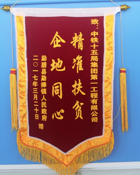 本站讯 近日,云南省勐腊县勐捧镇温泉村委会为中国铁建中铁十五局集团一公司玉磨铁路项目送来一面印有“精准扶贫 企地同心”的锦旗,感谢项目部今年三月为温泉村委会捐赠水泥帮助修路。