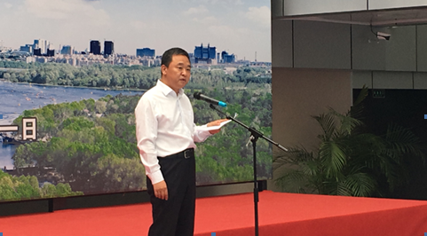长春市委宣传部副部长于迅来为媒体代表授旗